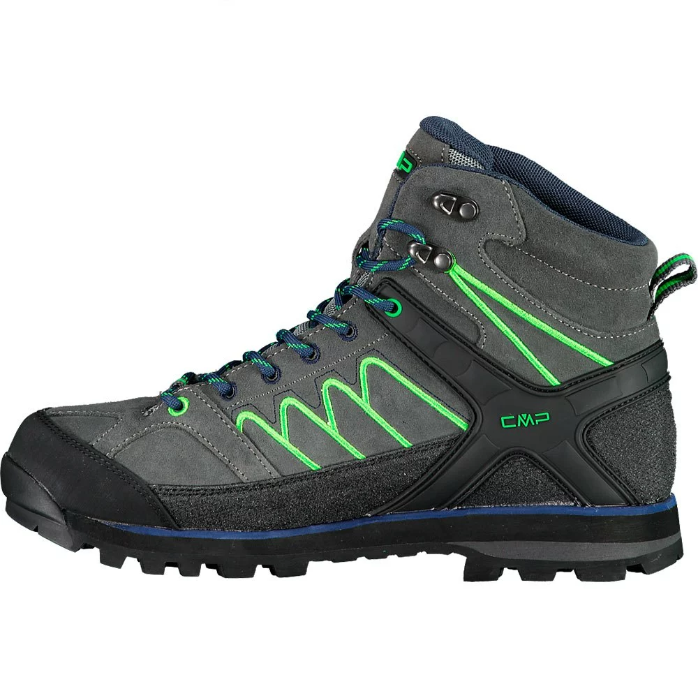 Moon Mid WP 31Q4797 Wanderstiefel ist ein CMP-Wanderstiefel für Herren mit hohem Rohrstock, der mit PU-Einsätzen für eine längere Lebensdauer ausgestattet ist. Die Konstruktion dieses Modells umfasst eine wasserdichte Membran im oberen Teil, die Feuchtigkeit ableitet und Ihre Haut länger trocken und frisch hält.