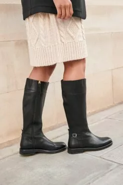 Next Schwarz – Forever Comfort® Kniehohe Lederstiefel Mit Niedrigem Absatz