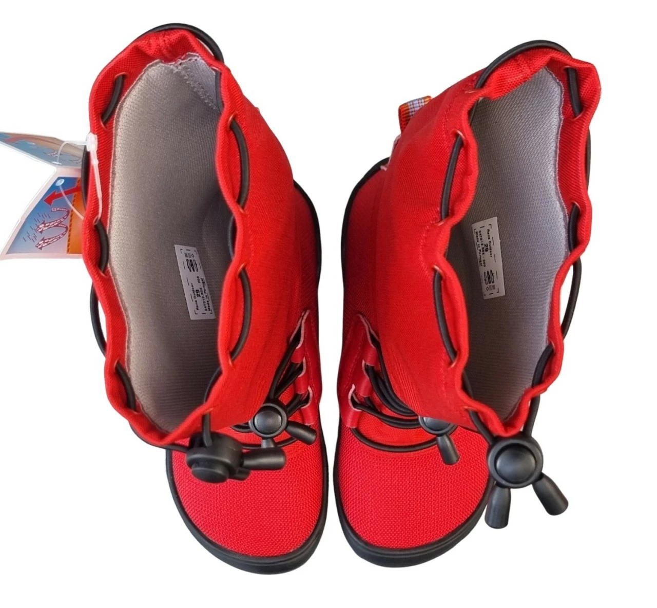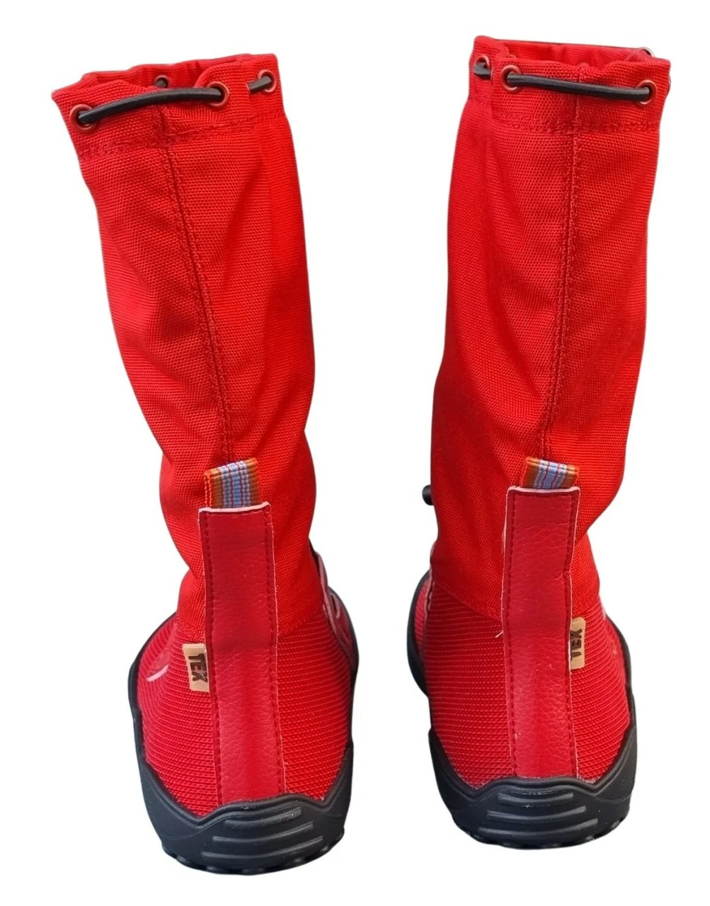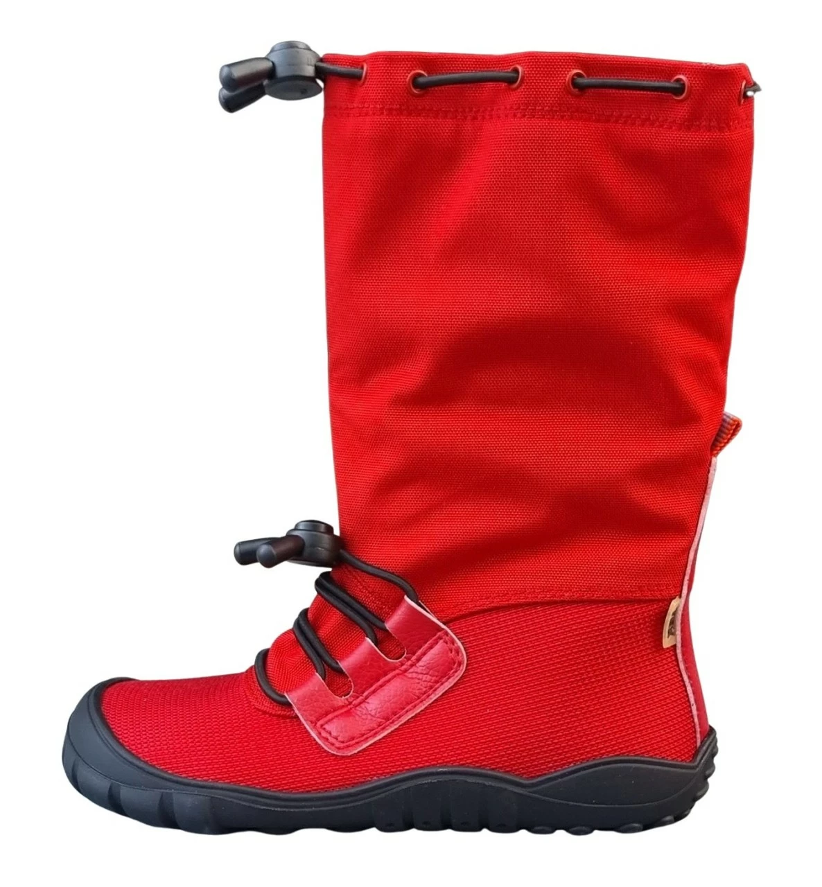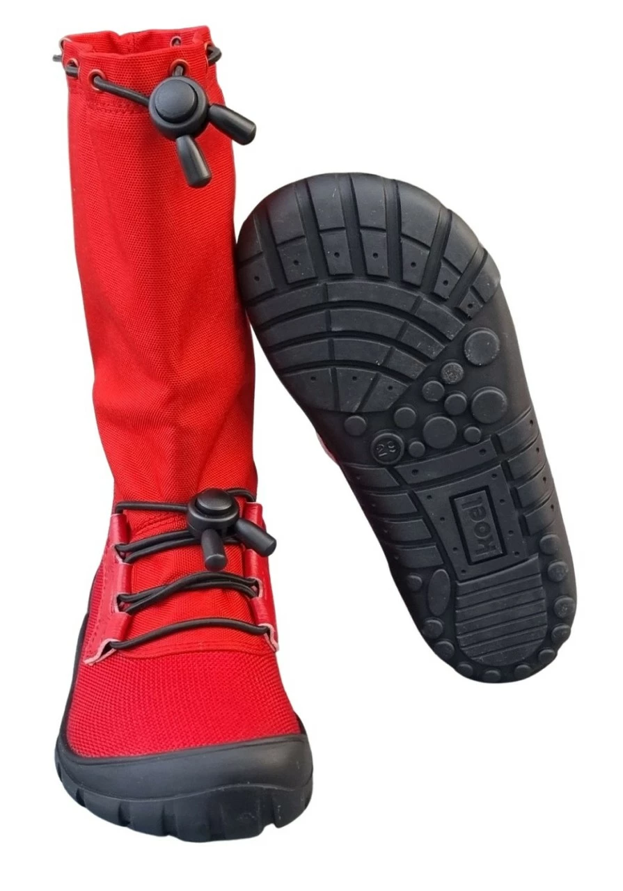 Die wasserdichten Kinder Regenstiefel RANA 4 rot mit der schwarzen Santi Laufsohle sind das neueste Modell aus der Koel Barfußschuh-Kollektion. Gefertigt wird der atmungsaktive Barfuß-Stiefel aus robustem Cordura-Nylon Funktionmaterial. Das leichte Mikrofaser Innenfutter aus recyceltem Polyester ist Temperatur ausgleichend und ideal für die Übergangszeit bei Temperaturen im +Plus Bereich. Der Schnellverschluß-Gummizug am Fußrücken ermöglicht eine individuelle Anpassung an den Fußrücken. Die Minimalsohle hat ein sehr gutes Profil und ist biegsam. Das sorgt für ein großartiges Laufgefühl und Bewegungsfreiheit für den Fuß. Die Paßform ist normal bis breit, jedoch nicht für Füße mit einem sehr hohen Spann geeignet. Ideal für den Waldkindergarten und Spielplatz, zum rennen, hüpfen, klettern, springen und toben. Klein zusammenlegbar und platzsparend zu verstauen.