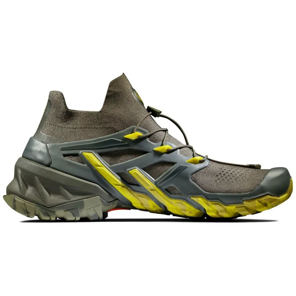 Scrambling verwischt die Grenzen zwischen Wandern, Bergsteigen und Klettern. Das war Mammuts Inspiration für die Entwicklung des Aegility Pro Mid Dt. Basierend auf der innovativen Mammut 360° Fusn-Technologie besteht er aus nur vier Teilen und vereint direkte Dämpfung, sicheren Halt und hohen Komfort in einem robusten und leichten Schuh. Die 360° gestrickte, nahtlose Sockenkonstruktion sorgt für flexiblen Komfort, reduziert Druckstellen und enthält eine wasserdichte Mammut Drytechnology®-Membran. Das neue Sohlendesign liegt nahe am Boden für verbesserte Kontrolle und verfügt über eine Mammut-Gummimischung, die einen zuverlässigen Rundum-Grip gewährleistet. Ein Schuh für schnelle Aufsteiger.