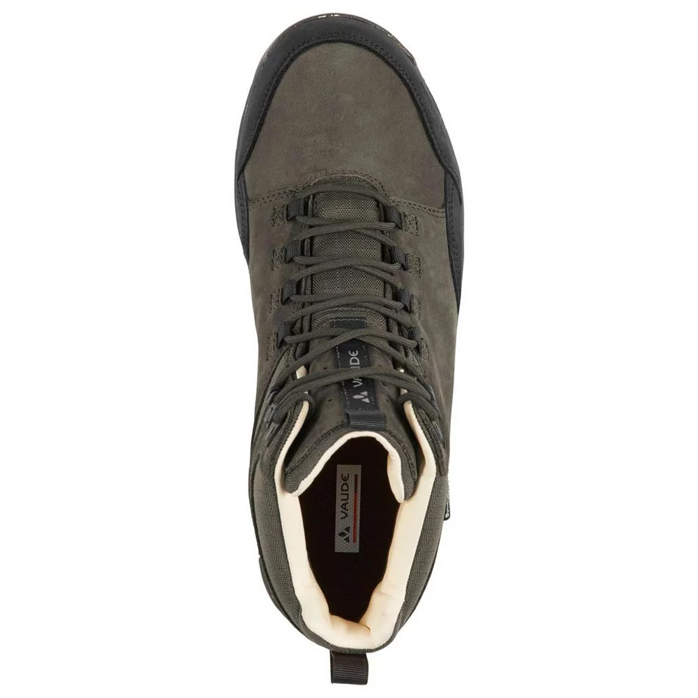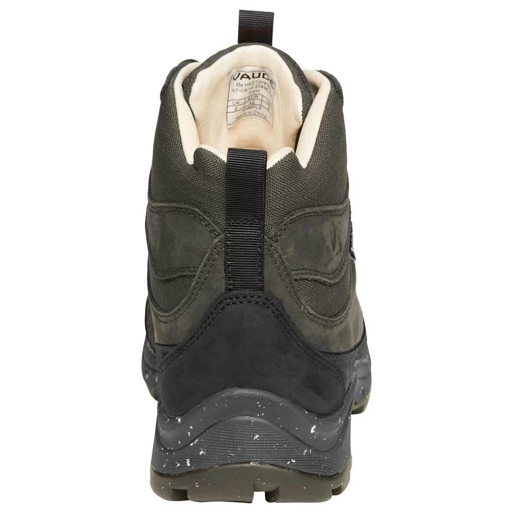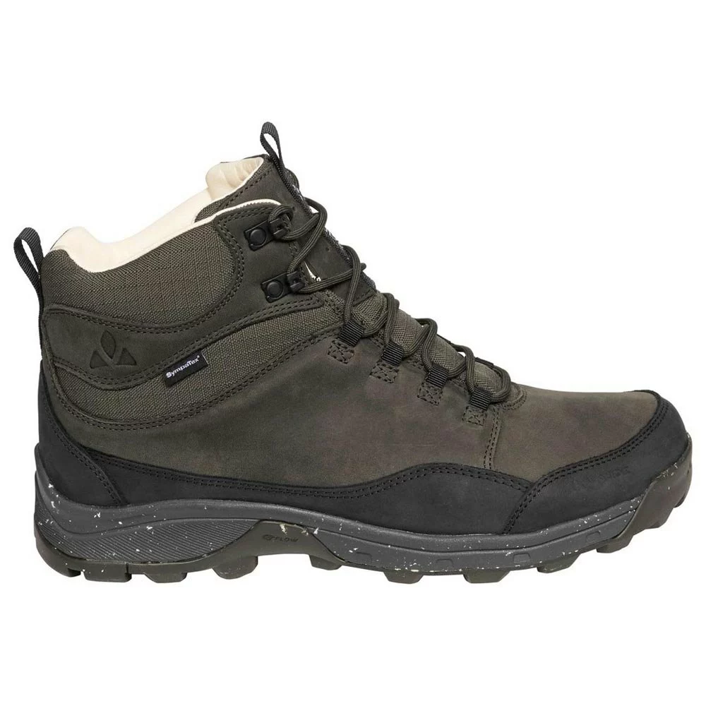 Oberschuh: Terracare®-zertifiziertes Leder, hydrophob geöltes Nubukleder 100% recyceltes Sympatex®-Membran 100% recyceltes Polyesterfutter Lederfutter am Schaft Einlegesohle: herausnehmbare Einlegesohlen Außensohle: VAUDE HKG Außensohle Gummilaufsohle mit 30% recyceltem Compound V PAD ergonomisches Fersendesign für beste Ergebnisse Bodenkontakt EVA-Zwischensohle mit biomechanischen Flexlinien EVA-Zwischensohle mit 20% recycelter Verbindung V Fließstabilitätsindex 5, mittelfest Merkmale: 360 ° Abrieb- und Aufprallschutz-Zughaken für perfekte Passform und Stabilität.